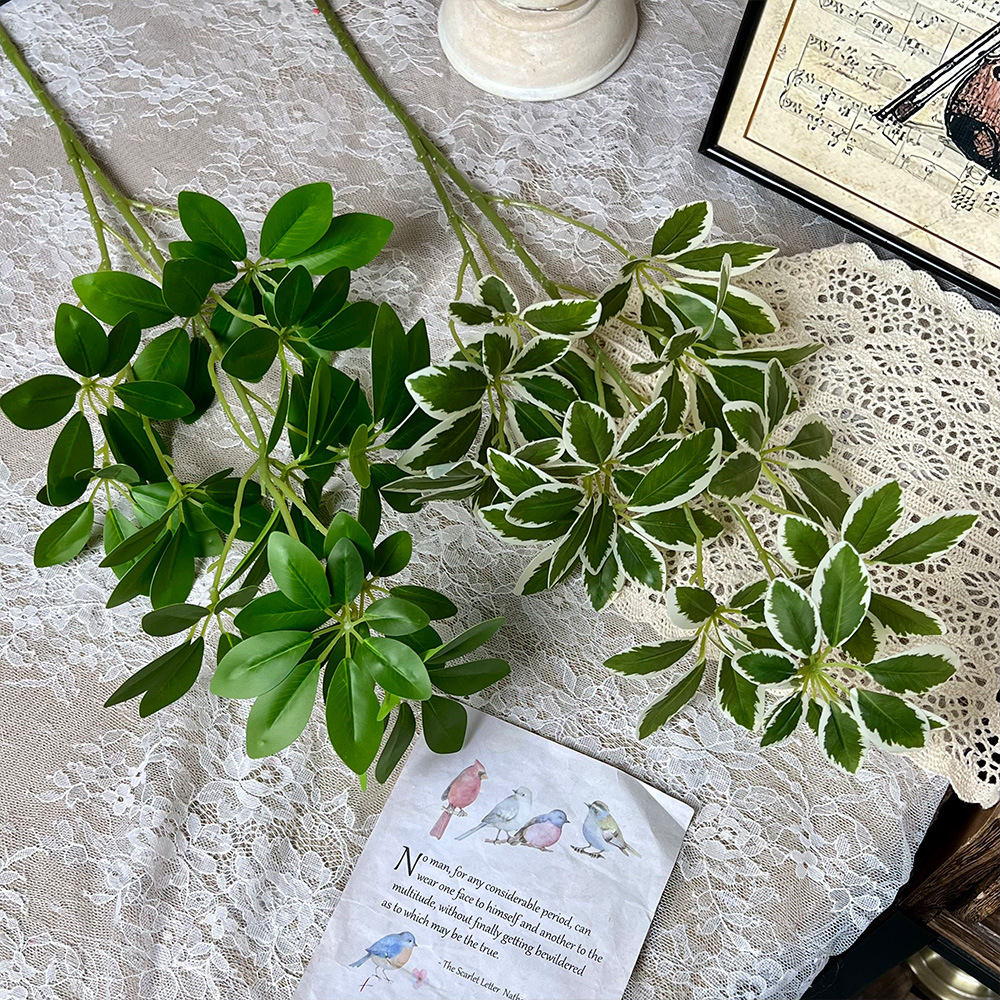 鸭嘴木仿真绿植假花发财叶单枝绿植客厅装饰摆件婚礼地排装饰叶材