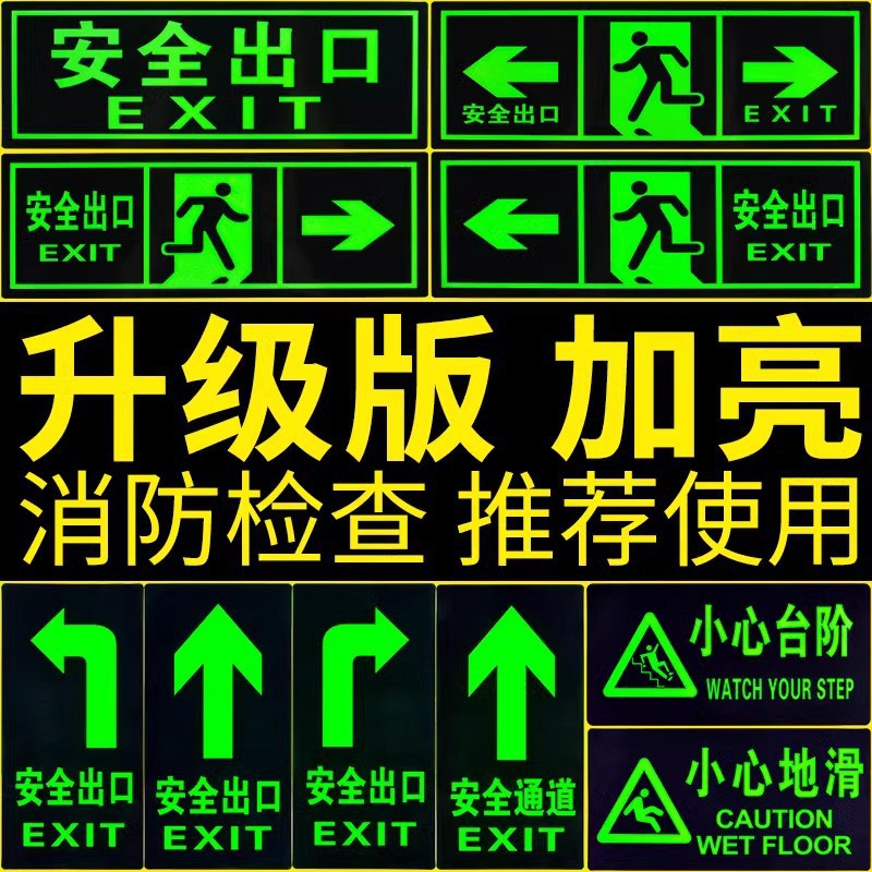 安全出口地贴夜光指示牌消防应急疏散通道标识贴 pvc自发光标识贴
