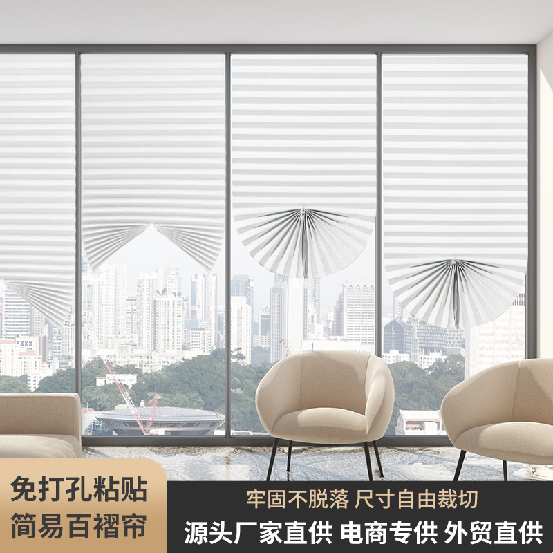 窗帘跨境简易无纺布百褶帘百折帘免打孔胶粘折叠半全遮光百叶窗帘