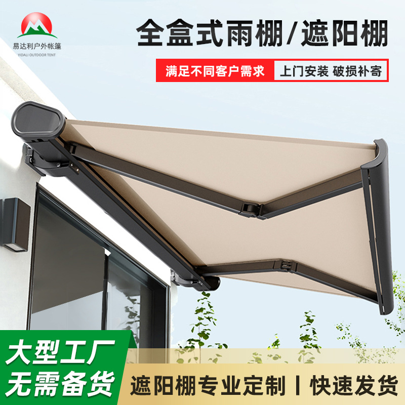 雨篷折叠铝合金户外帐篷阳台棚全盒子电动遮阳棚伸缩式雨棚露台棚
