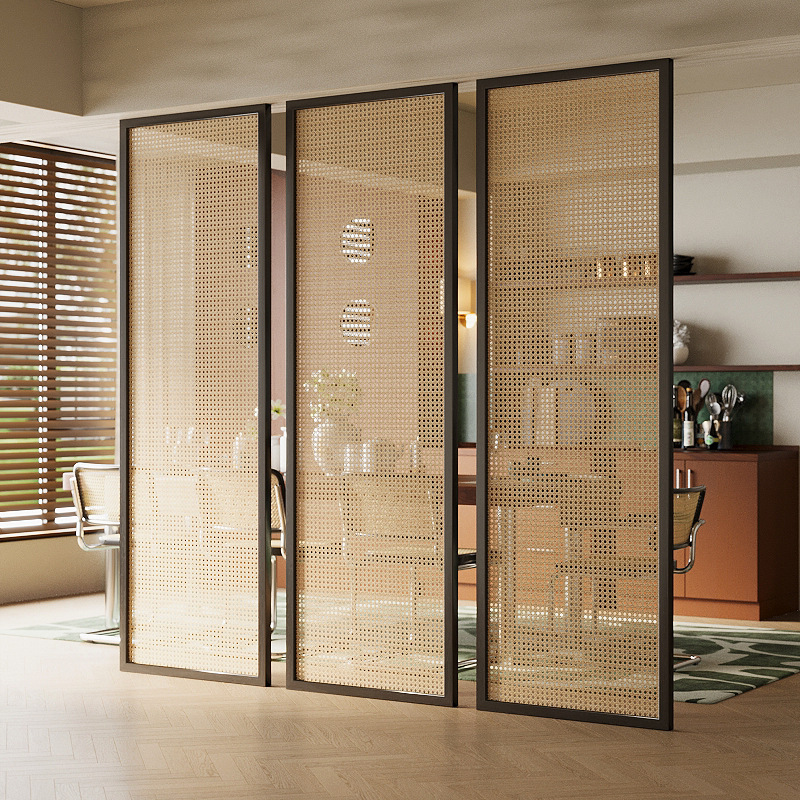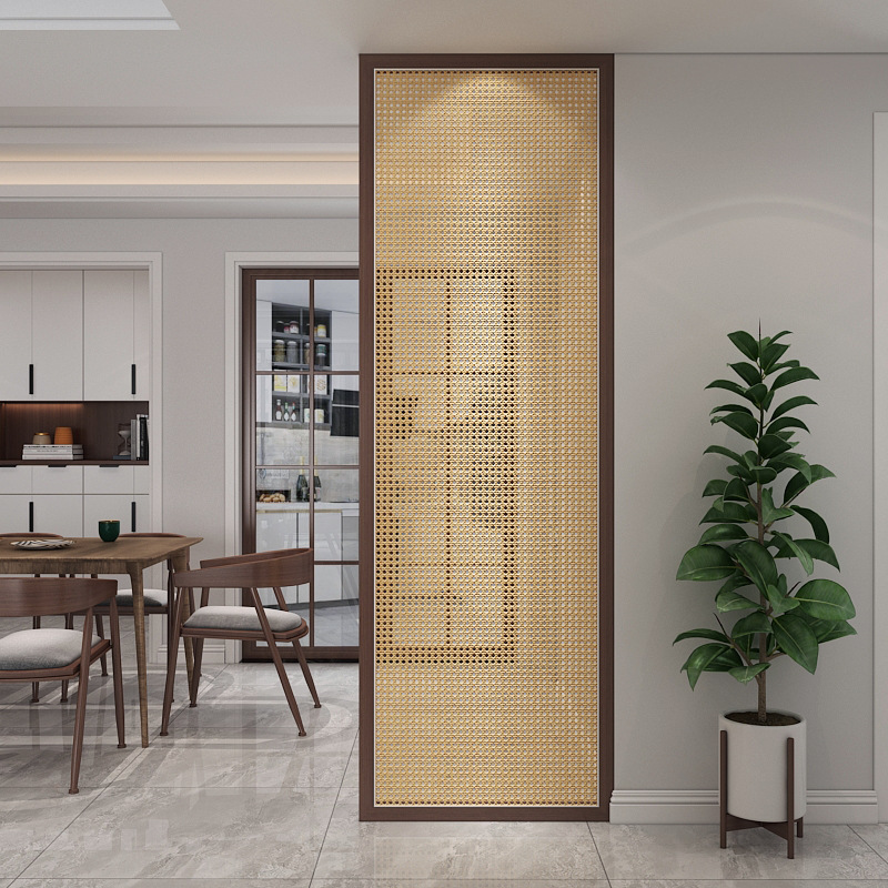 阳氏木业藤编屏风隔断客厅玄关入户遮挡现代简约实木镂空现代简约