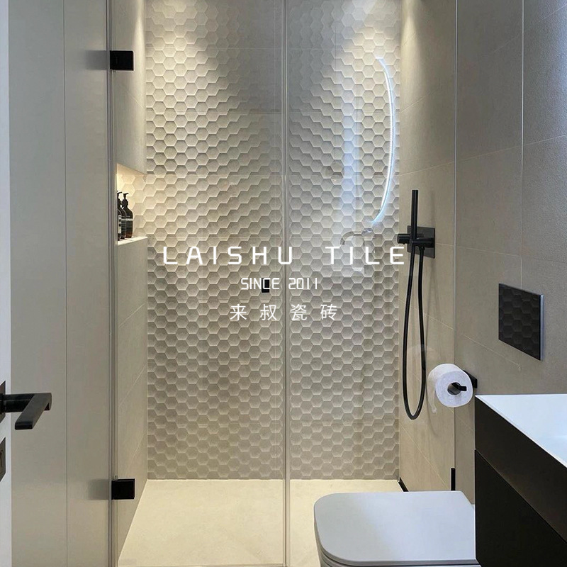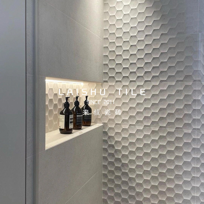 来叔西班牙living素色哑光300*800卫生间凹凸瓷砖菱形蜂窝造型砖
