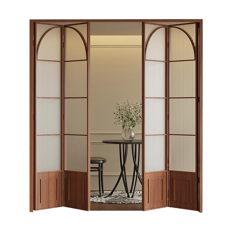 复古胡桃木折叠门阳台厨房玻璃门钛镁铝合金极窄折叠推拉门隔断门