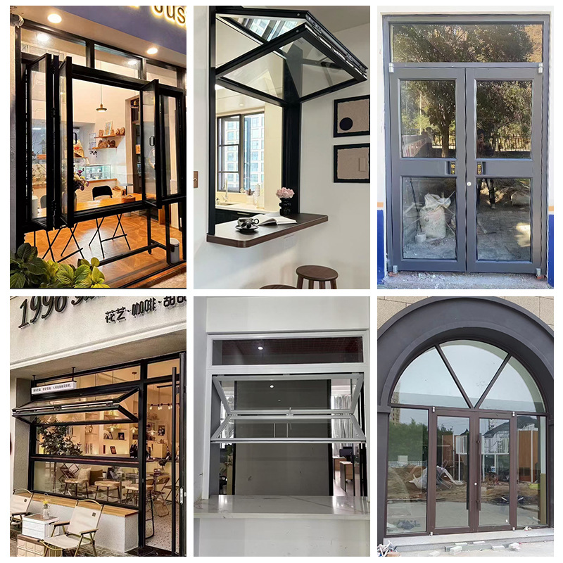 铝合金折叠窗上下折叠静音断桥传菜口咖啡奶茶店厨房餐厅玻璃窗