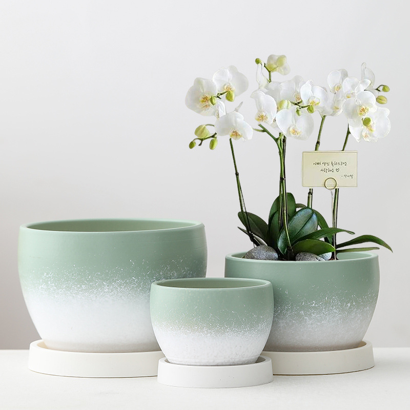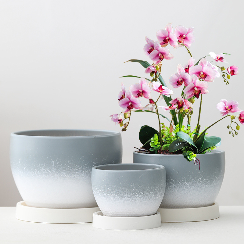 陶瓷花盆家用郁金香土培绿萝多肉盆栽高级大号大口径特价清仓带托